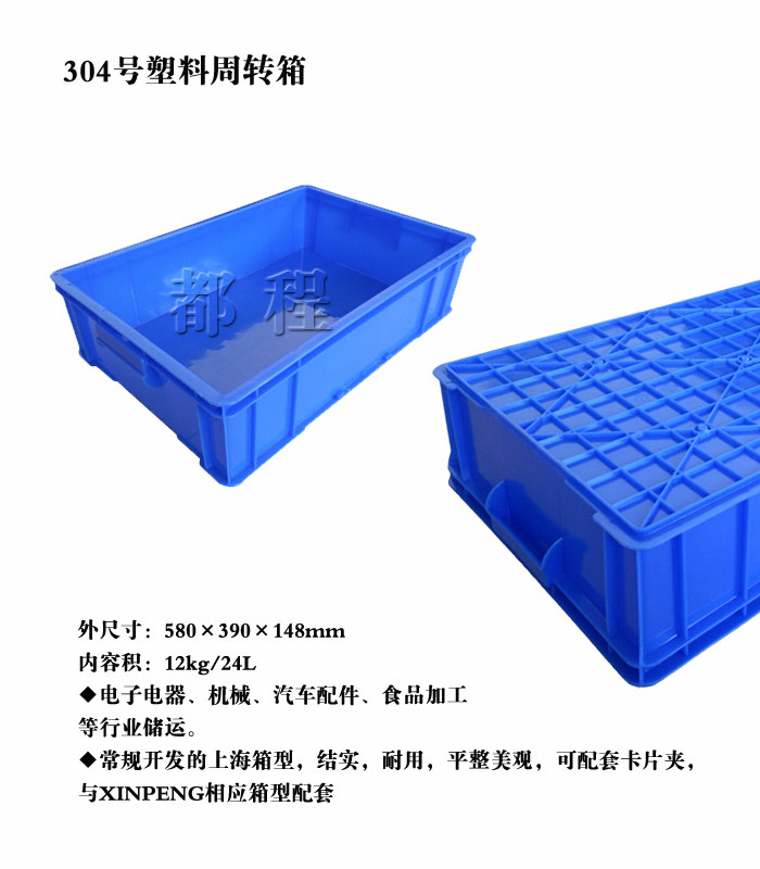 編號: X304 外尺寸(mm): 580*390*148 內尺寸(mm): 536*356*142 內容積(L): 24 備注: 適用于電子電器、機械、汽車配件、食品加工等行業。產品結實耐用,平整美觀,可配套卡片夾,與XINPENG相應箱型配套。